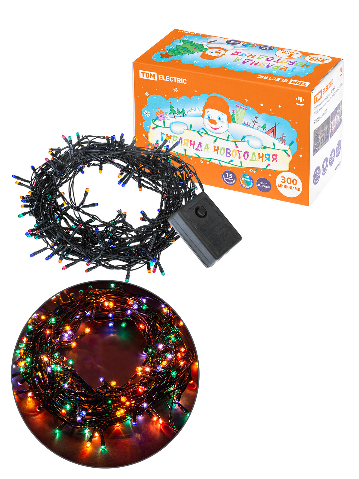 Наименование: Гирлянда новогодняя, МГ 300, 220 В, многоцветная, 15 м, 8 режимов TDM