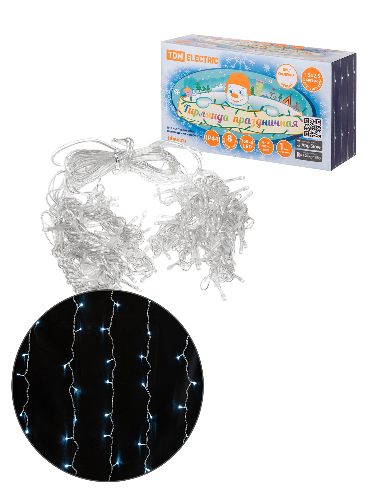 Наименование: Гирлянда новогодняя "Занавес" 1,5х2,5 м, белый свет, 8 режимов, наружное использование, IP44, TDM