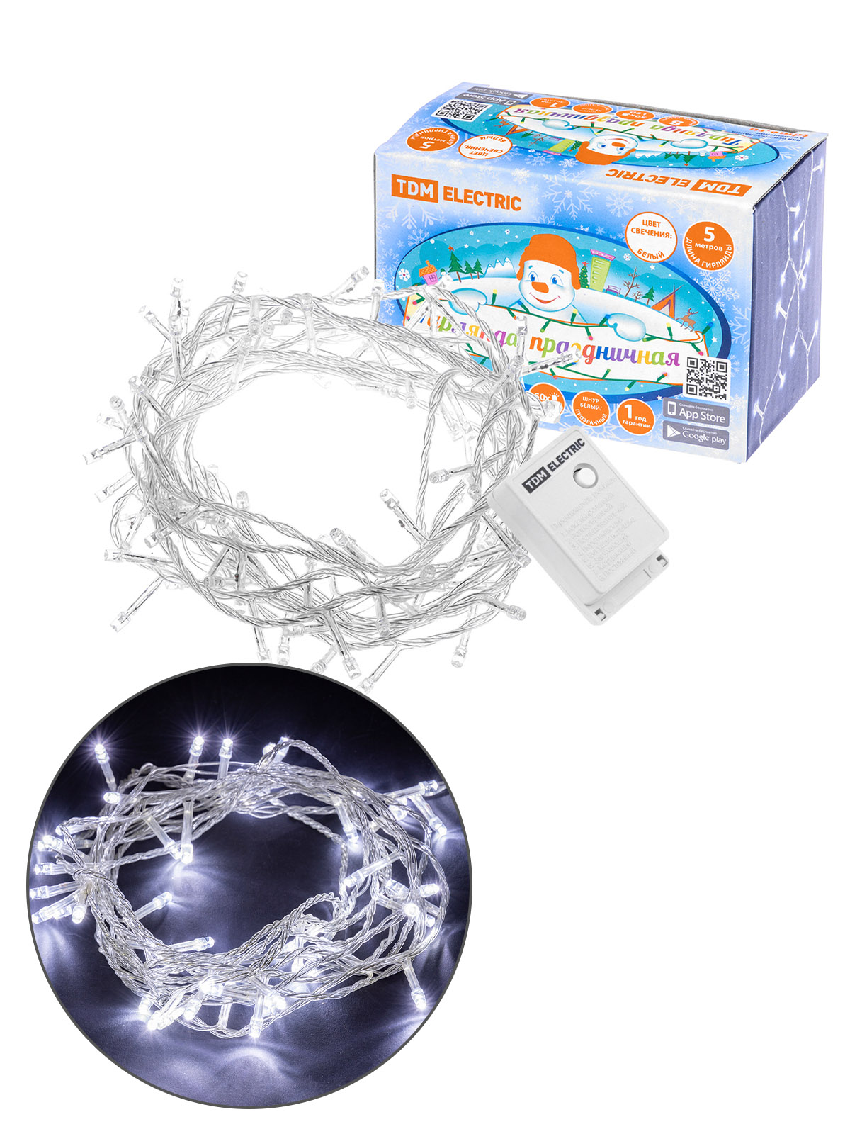 Наименование: Гирлянда светодиодная СГ50Б5, белая, 5м, 8 режимов, 250 В, TDM