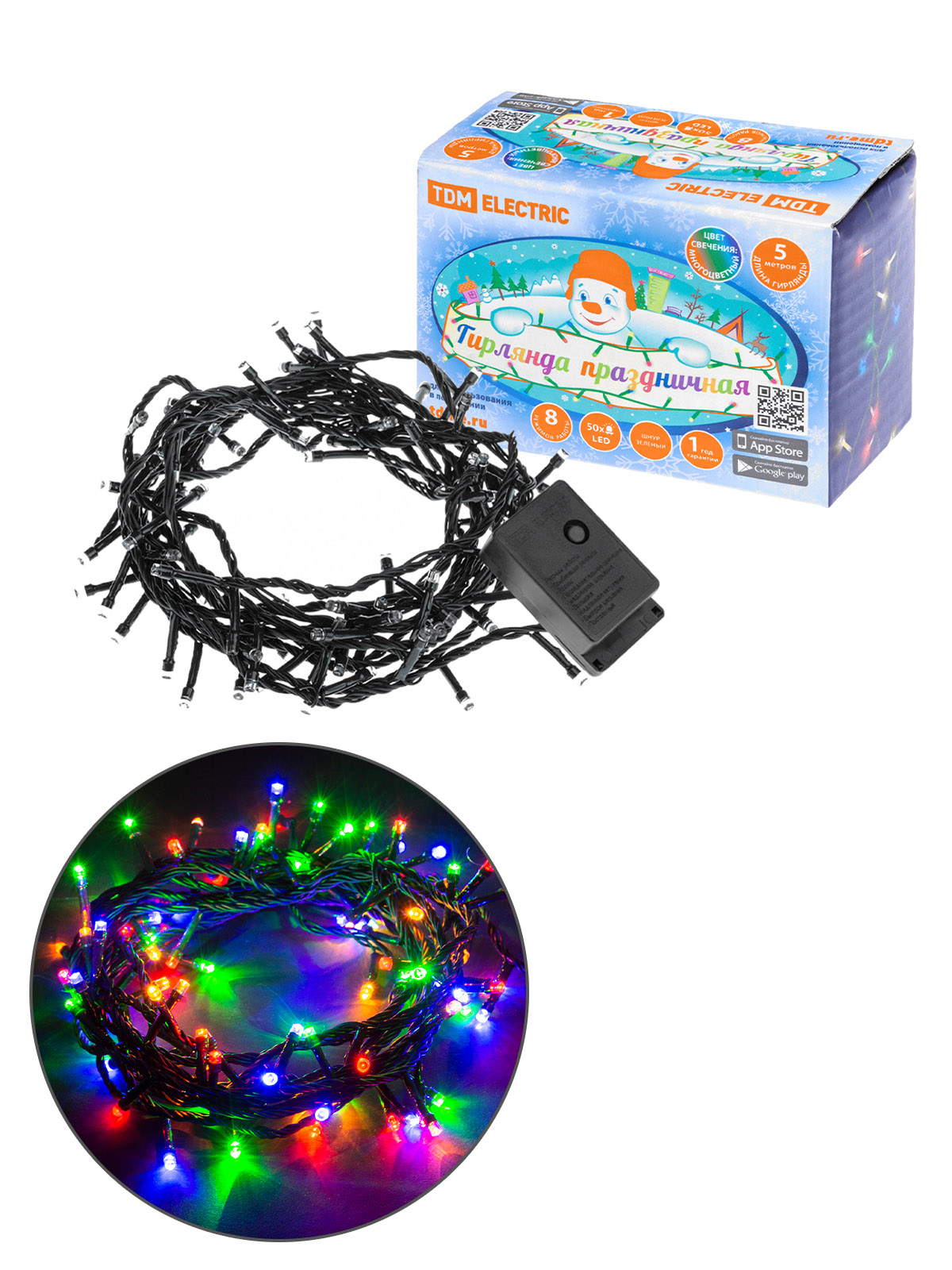 Гирлянда светодиодная СГ50MЗ5, многоцвет., зеленый шнур, 5м, 8 режимов, 250 В, TDM