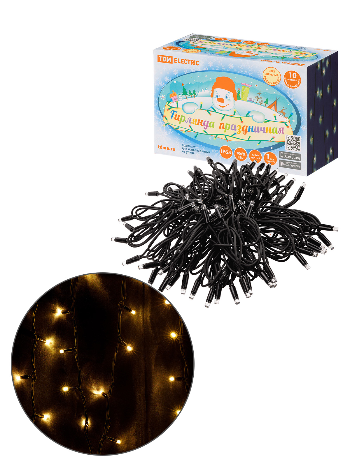 Гирлянда светодиодная СГУ100БТ10, 10м, 3000К, каучук чер., посл. подкл, IP65, 250 В, TDM