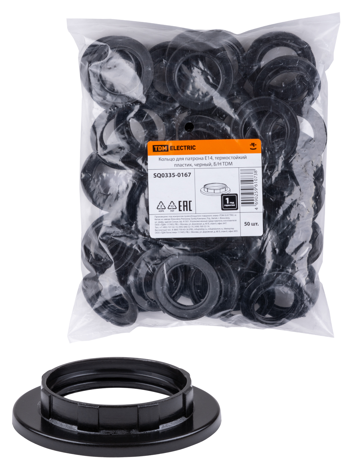 Наименование: Кольцо для патрона Е14, термостойкий пластик, черный, Б/Н TDM