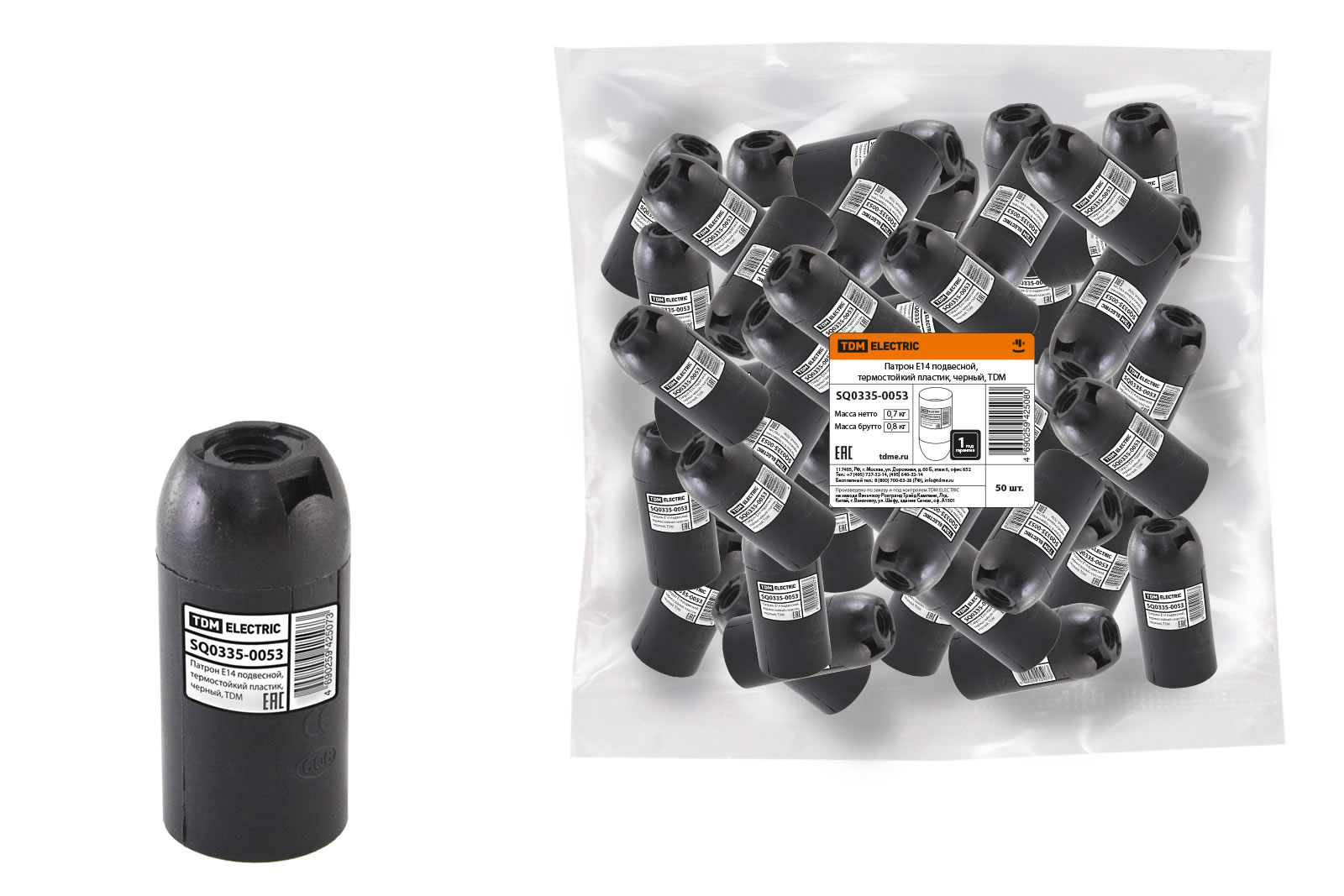 Наименование: Патрон Е14 подвесной, термостойкий пластик, черный, TDM