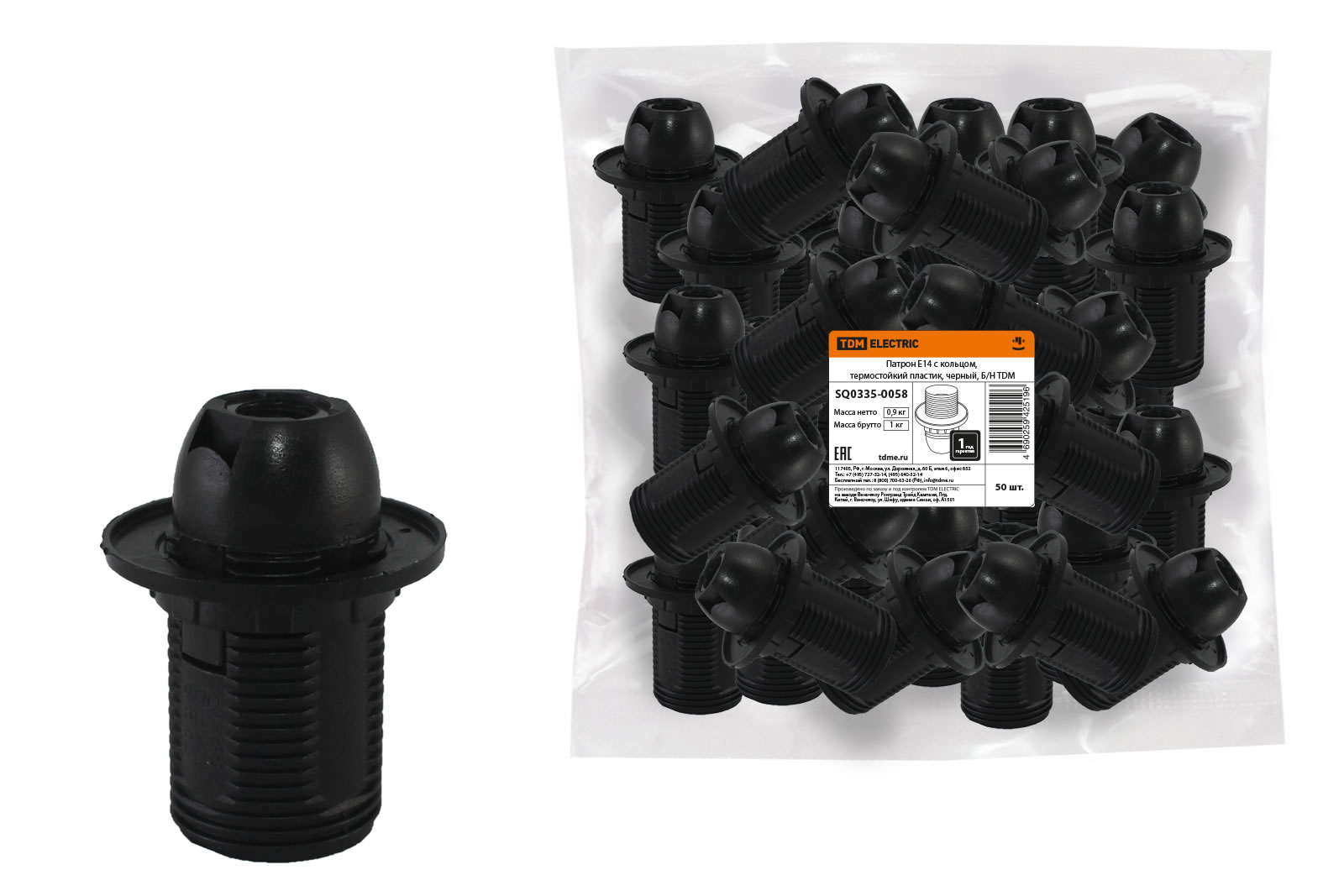Наименование: Патрон Е14 с кольцом, термостойкий пластик, черный, Б/Н TDM