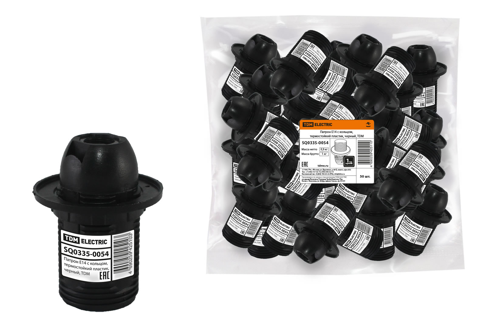 Наименование: Патрон Е14 с кольцом, термостойкий пластик, черный, TDM