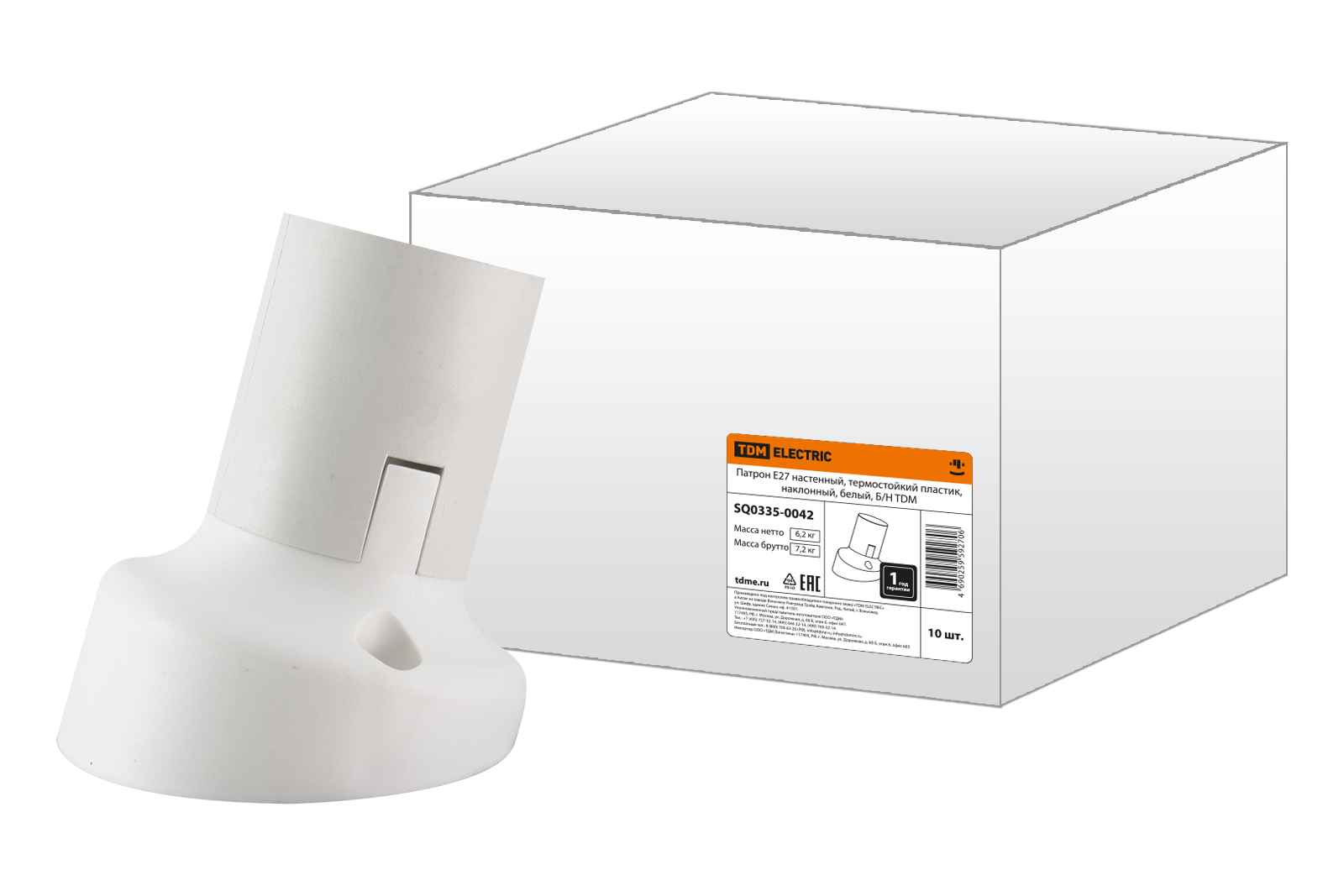 Наименование: Патрон Е27 настенный, термостойкий пластик, наклонный, белый, Б/Н TDM