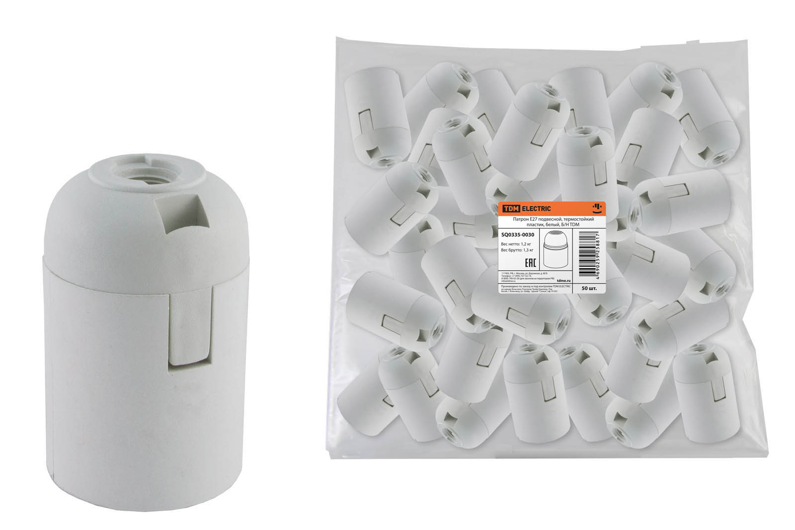Наименование: Патрон Е27 подвесной, термостойкий пластик, белый, Б/Н TDM