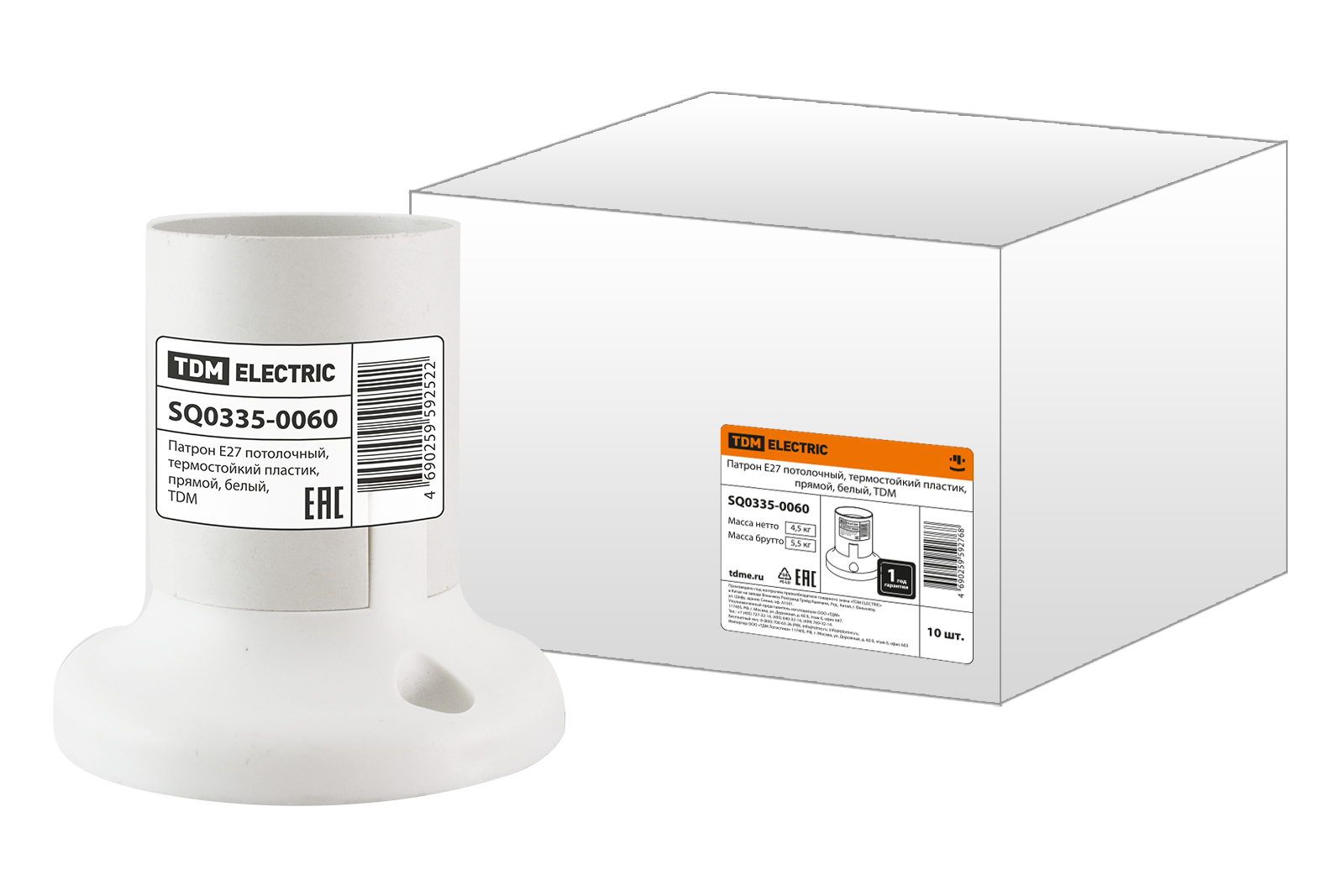 Наименование: Патрон Е27 потолочный, термостойкий пластик, прямой, белый, TDM