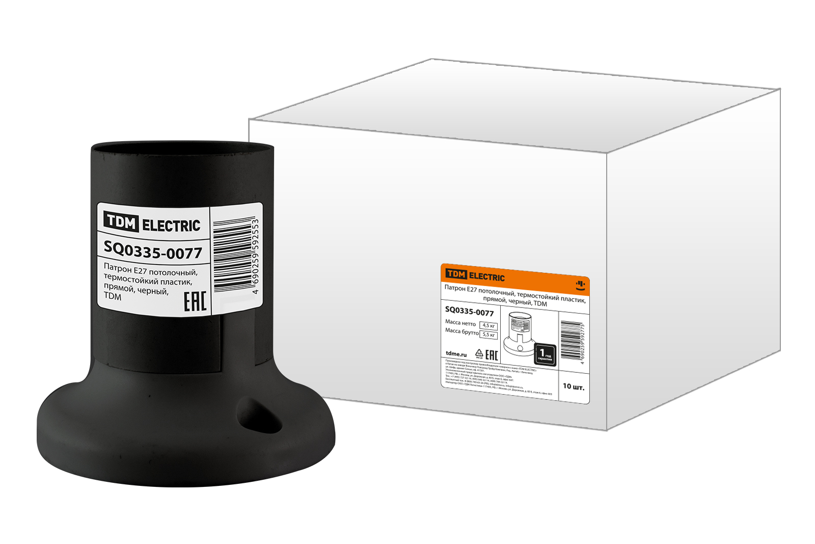 Наименование: Патрон Е27 потолочный, термостойкий пластик, прямой, черный, TDM