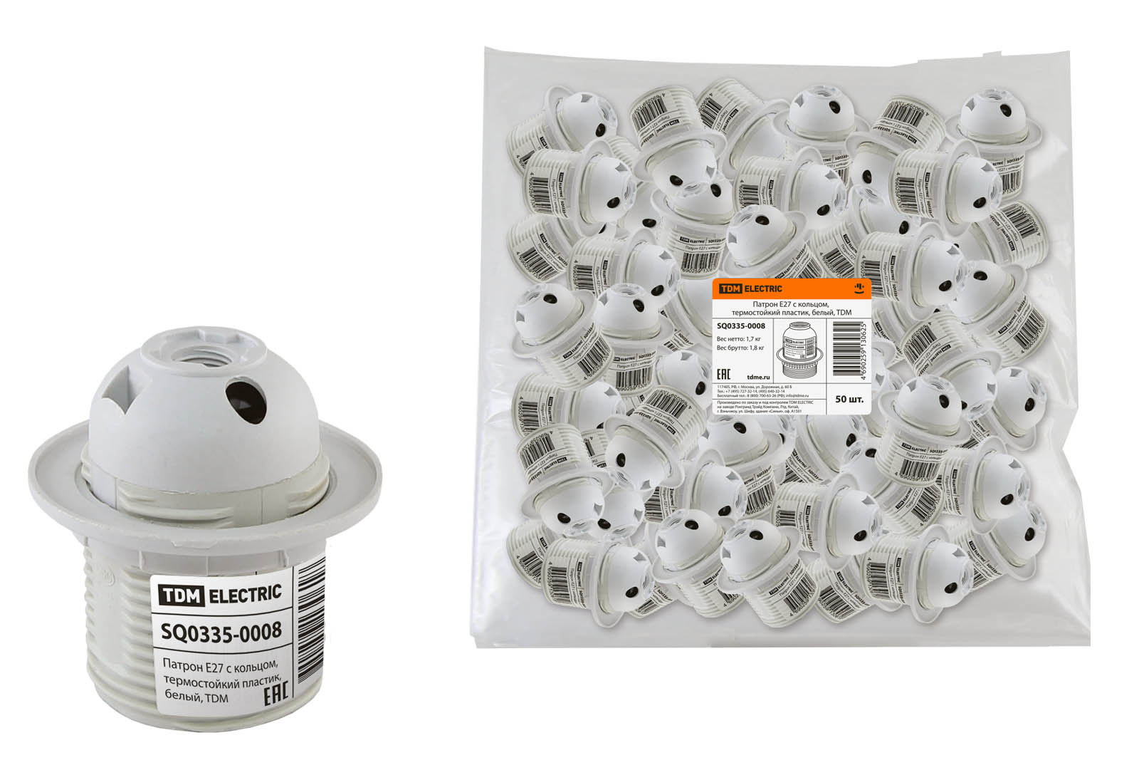 Наименование: Патрон Е27 с кольцом, термостойкий пластик, белый, TDM