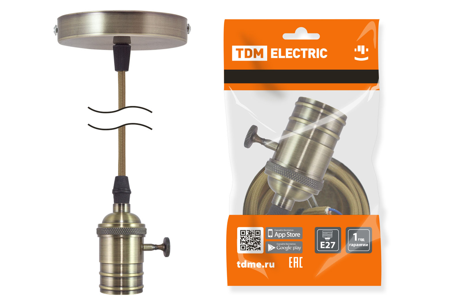 Наименование: Патрон Е27 с выключателем с подвесом 1 м, металлический "Лофт", бронза TDM