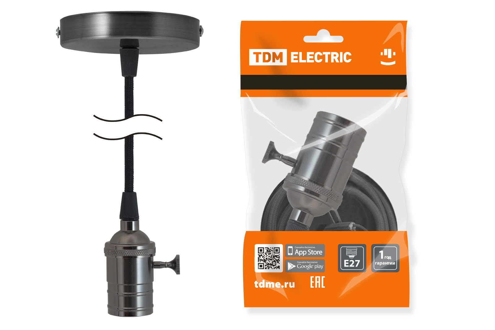 Наименование: Патрон Е27 с выключателем с подвесом 1 м, металлический "Лофт", черный TDM