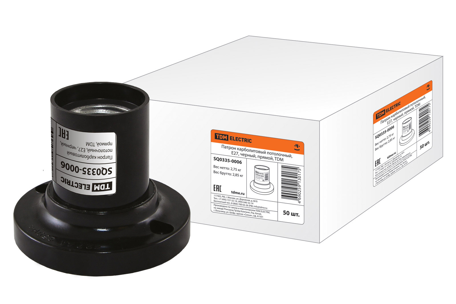 Наименование: Патрон карболитовый потолочный, Е27, черный, прямой, TDM