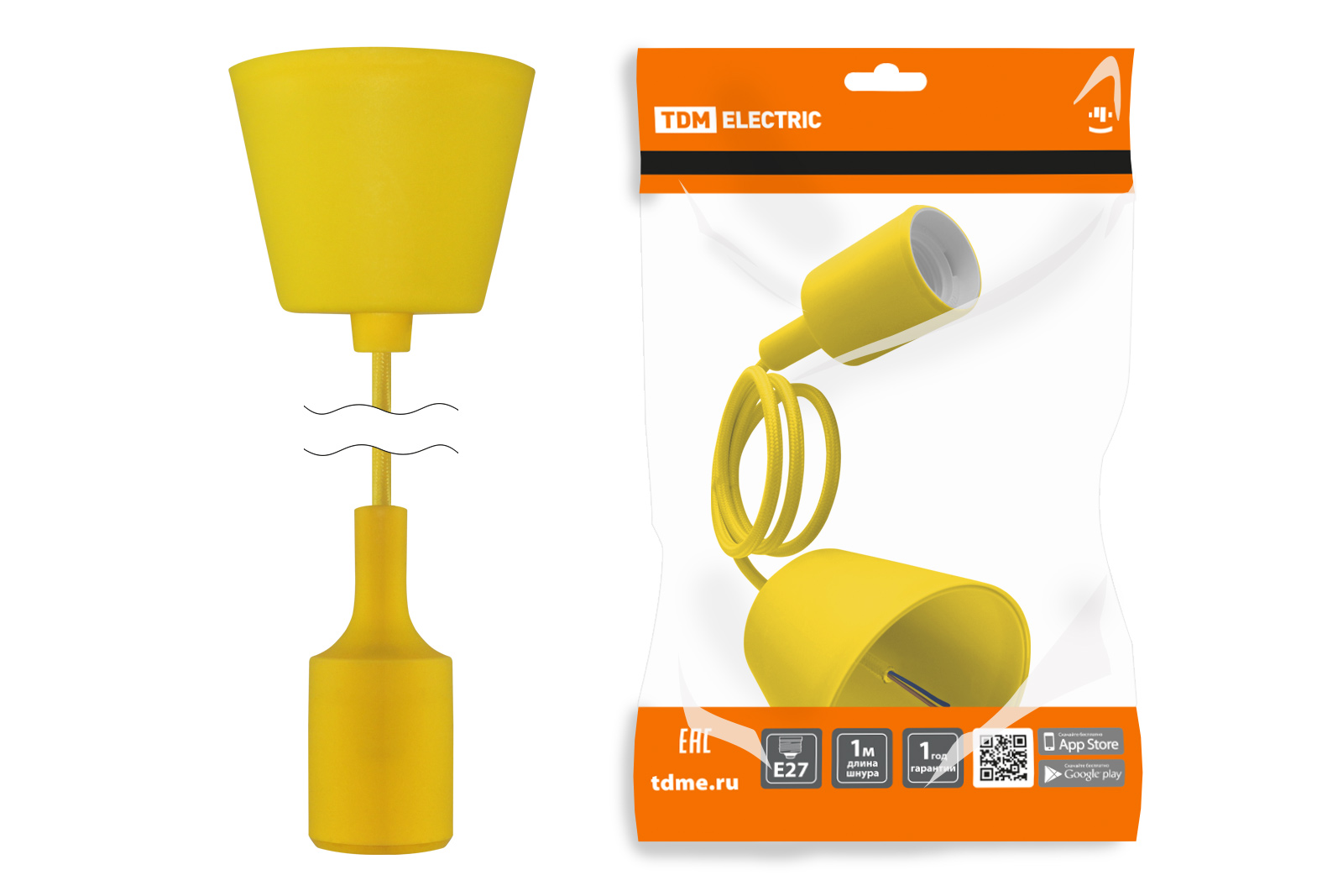 Наименование: Патрон пластиковый Е27 с подвесом 1 м, желтый TDM