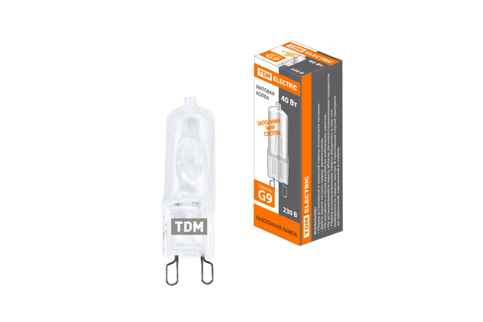 Наименование: Лампа капсульная галогенная JCD - 40 Вт - 230 В - G9 матовая TDM