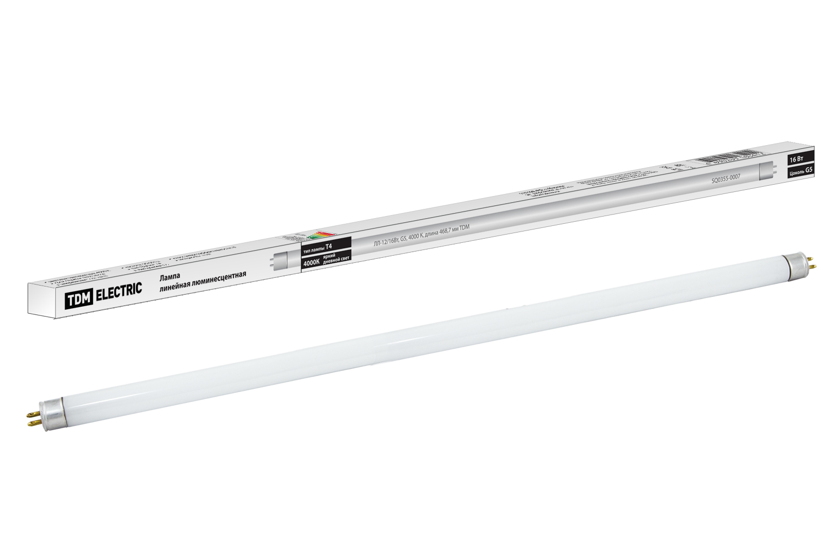 Наименование: Лампа люминесцентная линейная двухцокольная ЛЛ-12/16Вт, T4/G5, 4000 К, длина 468,7мм TDM