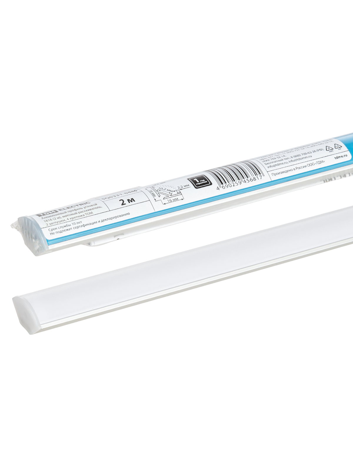 Наименование: Алюминиевый профиль угловой 1616 (2 м), матовый рассеиватель, 2 заглушки, 4 крепежа TDM