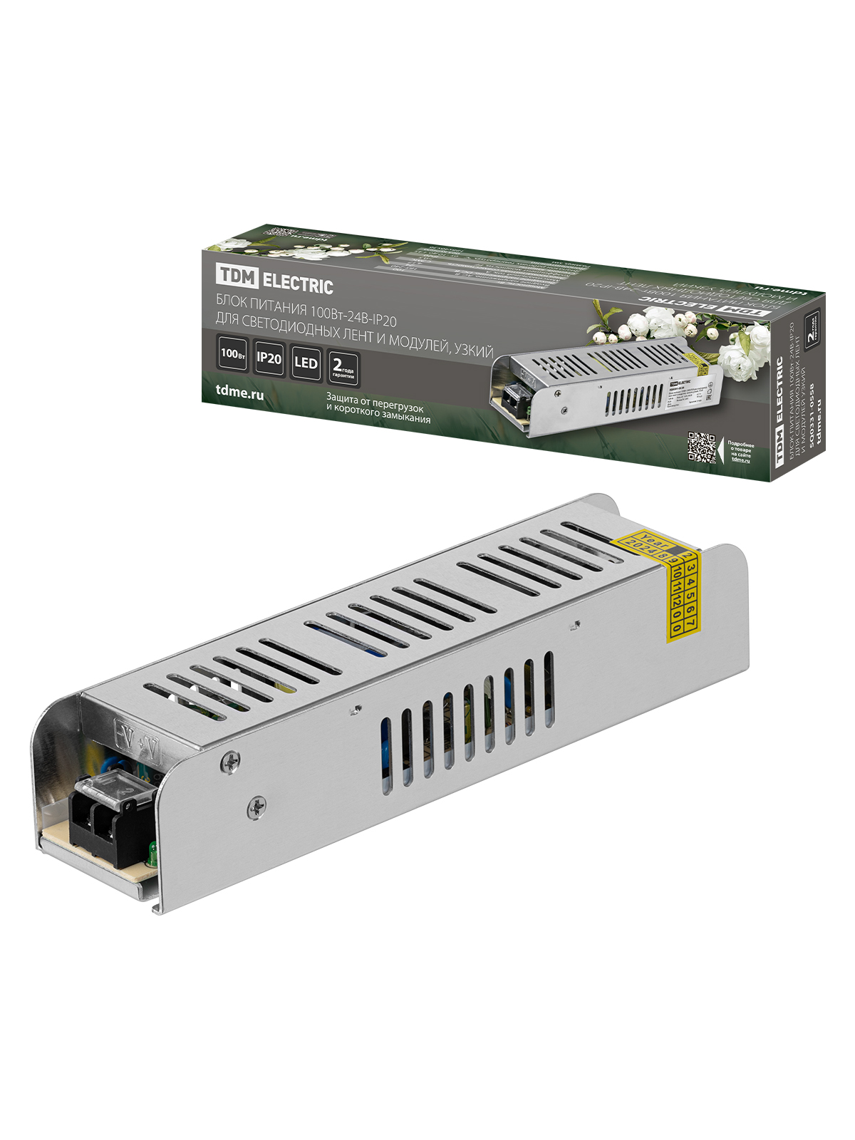 Наименование: Блок питания 100Вт-24В-IP20 для светодиодных лент и модулей, металл, узкий, TDM