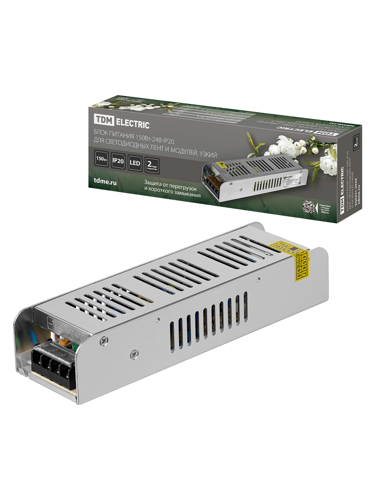 Наименование: Блок питания 150Вт-24В-IP20 для светодиодных лент и модулей, металл, узкий, TDM
