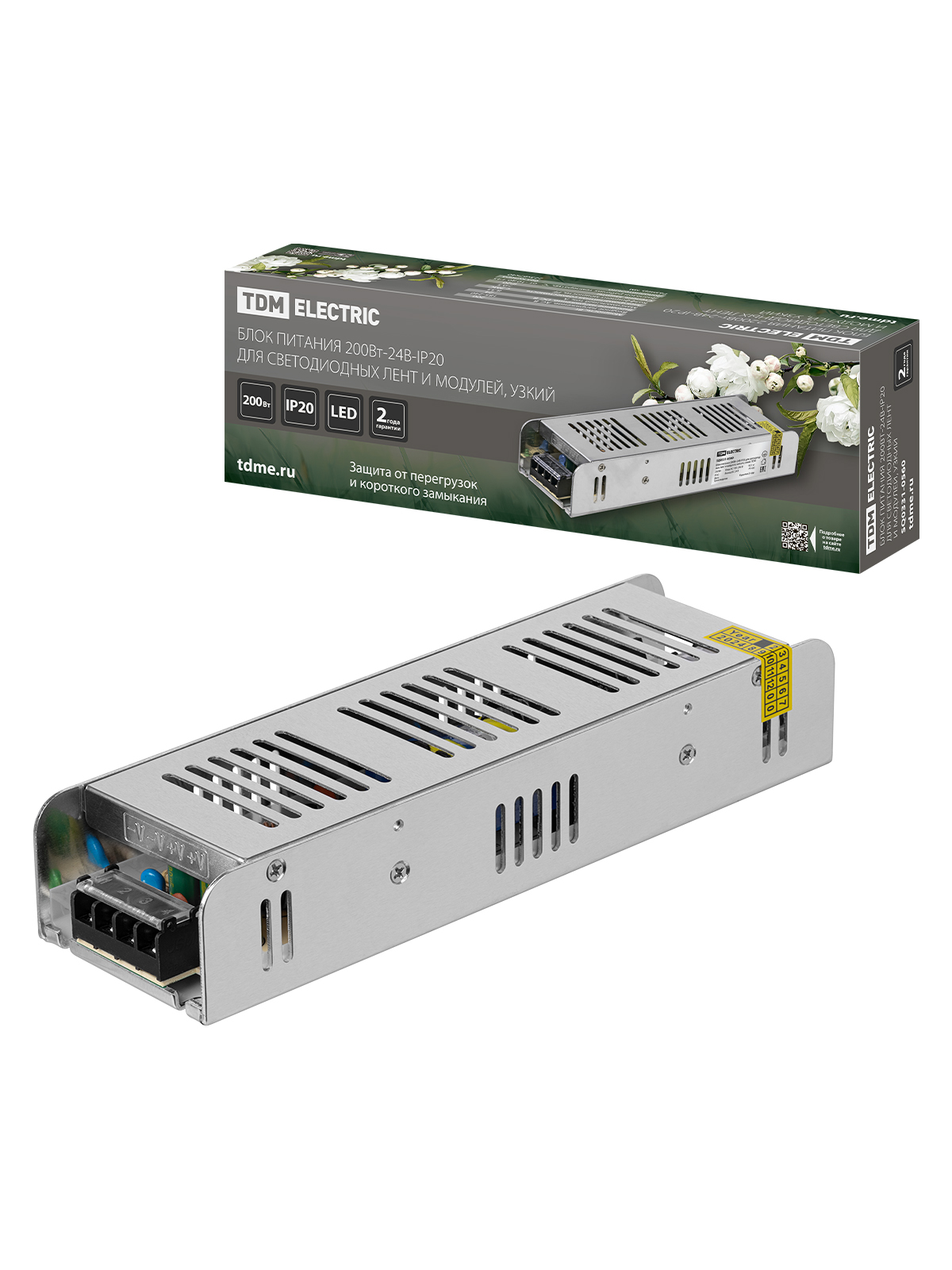 Наименование: Блок питания 200Вт-24В-IP20 для светодиодных лент и модулей, металл, узкий, TDM