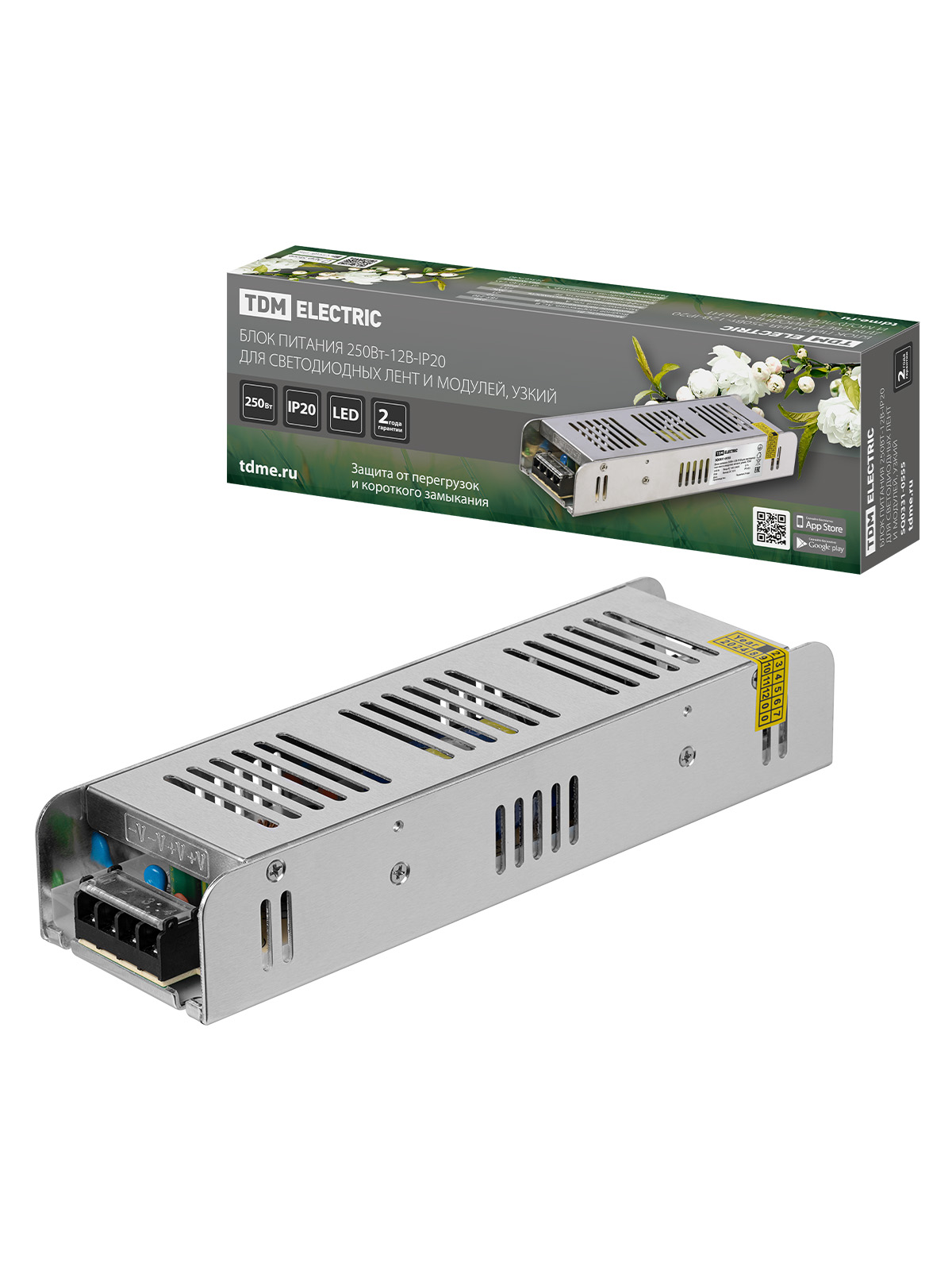 Наименование: Блок питания 250Вт-12В-IP20 для светодиодных лент и модулей, металл, узкий, TDM