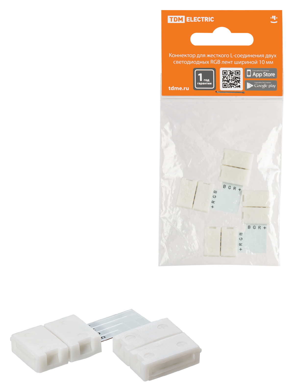 Наименование: Коннектор для жесткого L-соединения двух светодиодных RGB лент шириной 10 мм, (уп. 2 шт), TDM