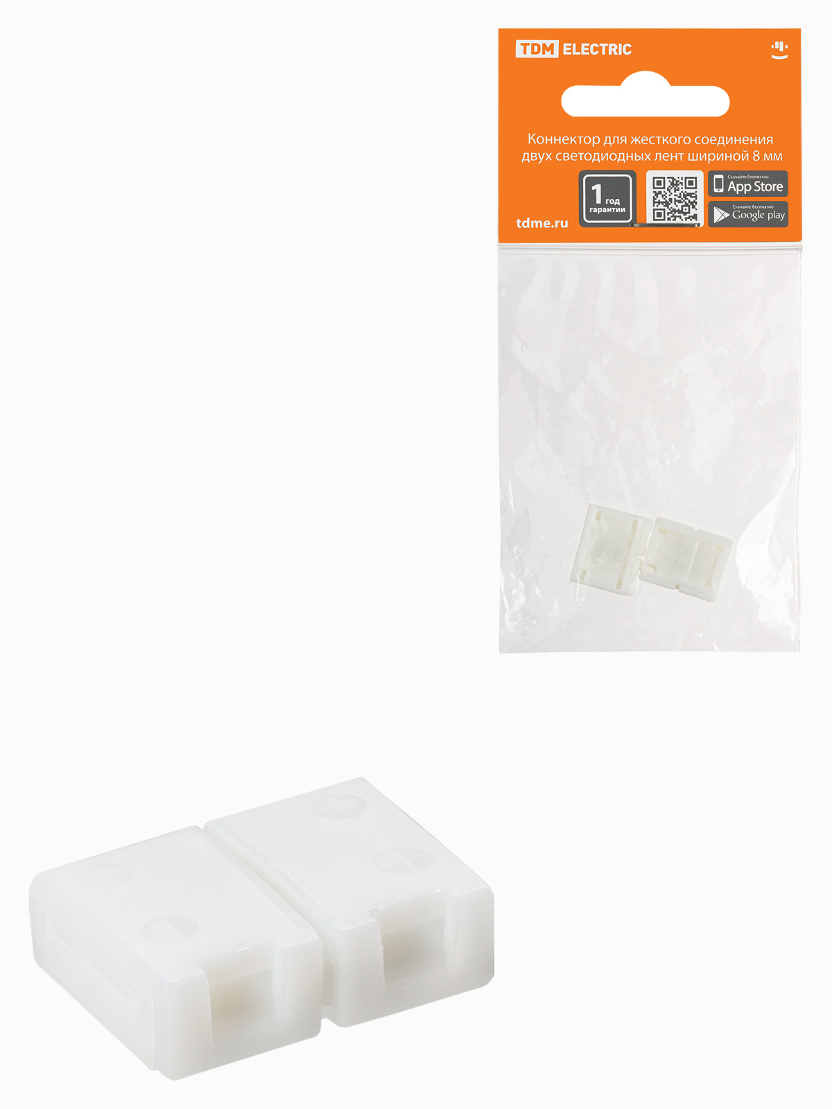Наименование: Коннектор для жесткого соединения двух светодиодных лент шириной 8 мм, (уп. 2 шт), TDM