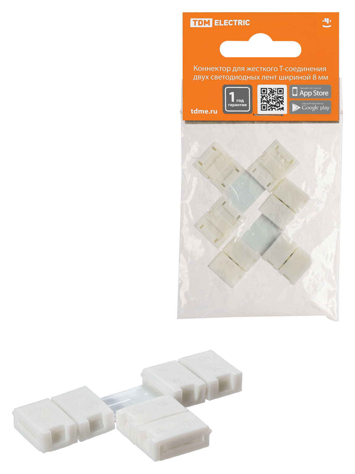 Наименование: Коннектор для жесткого T-соединения двух светодиодных лент шириной 8 мм, (уп. 2 шт), TDM