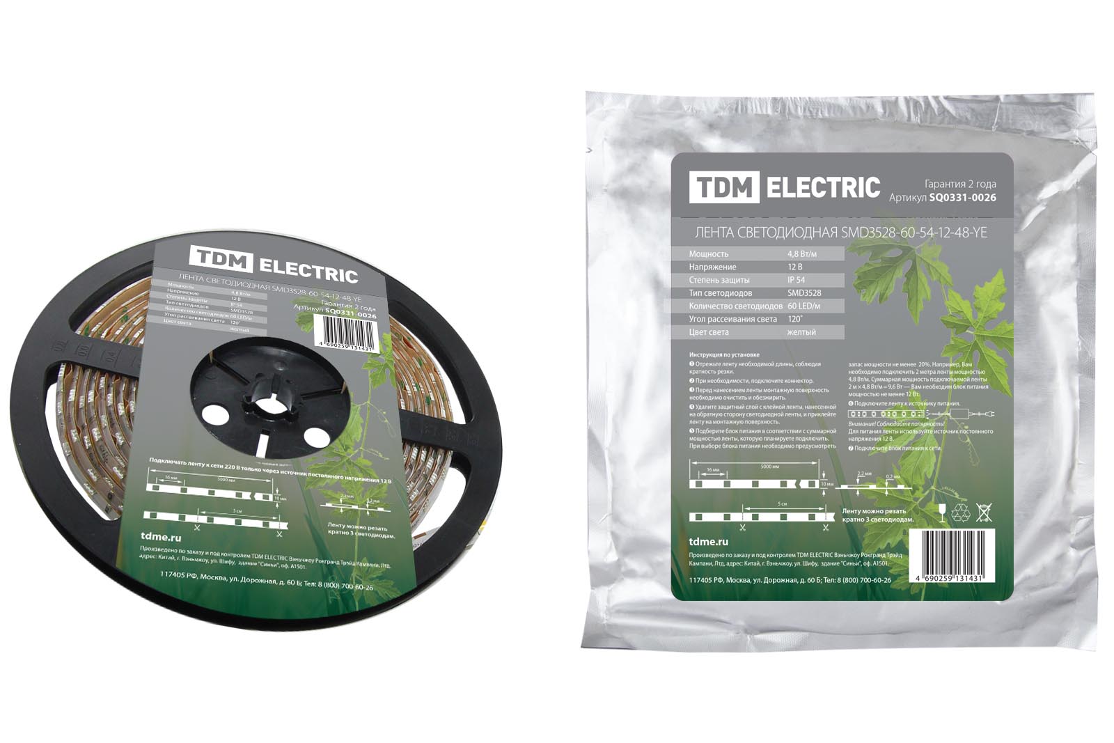 Наименование: Лента светодиодная SMD3528-60-54-12-48-YE 60LED/м, IP54, 12В, 4,8Вт, желтый, TDM