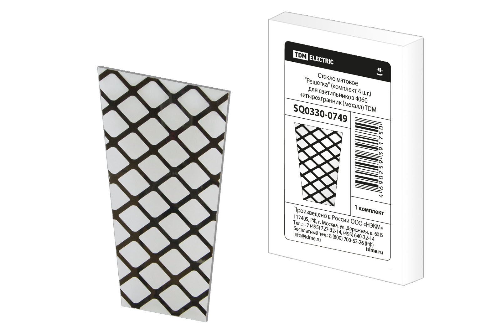 Наименование: Стекло матовое "Решетка" (комплект 4 шт.) для светильников 4060 четырехгранник (металл) TDM
