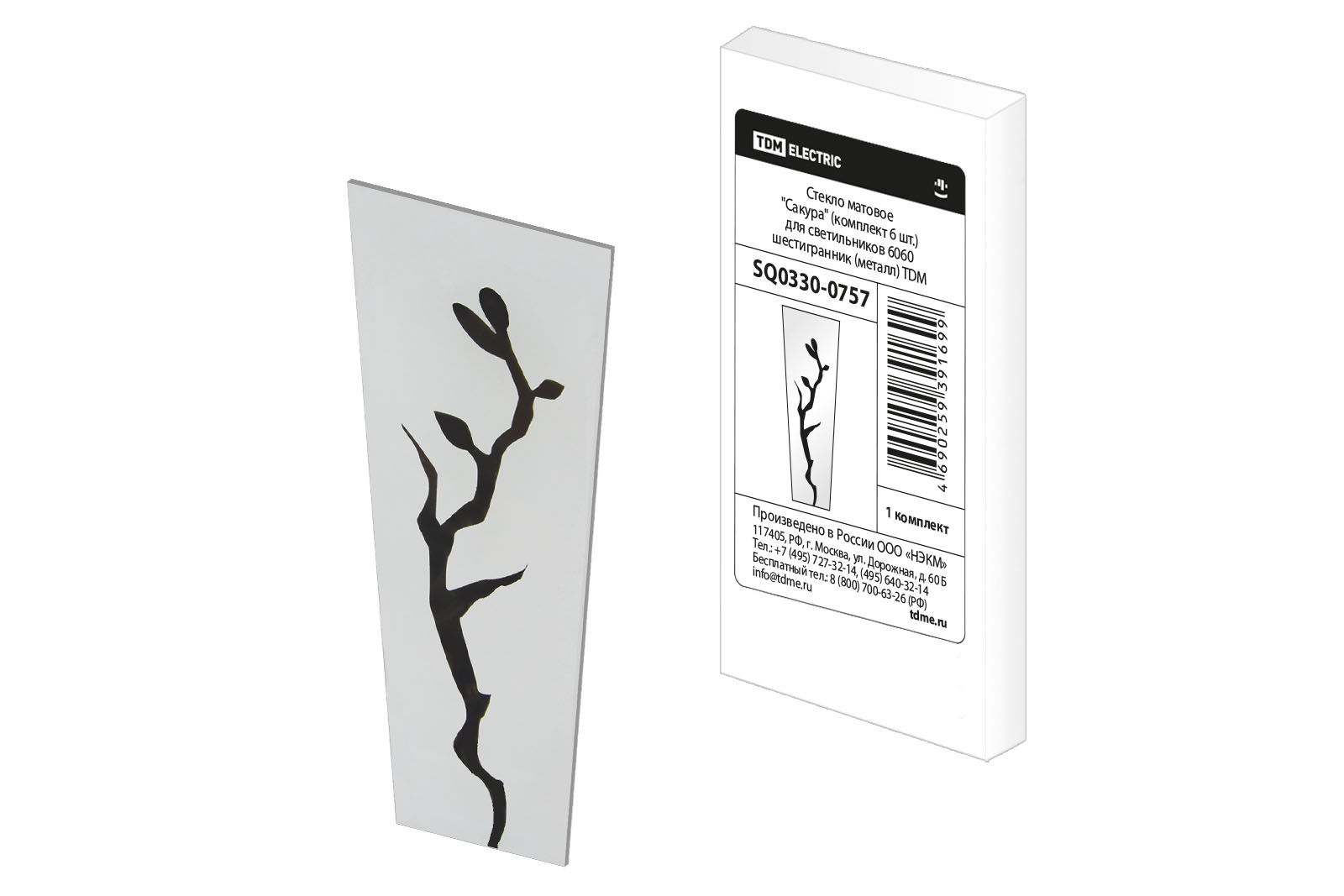 Наименование: Стекло матовое "Сакура" (комплект 6 шт.) для светильников 6060 шестигранник (металл) TDM