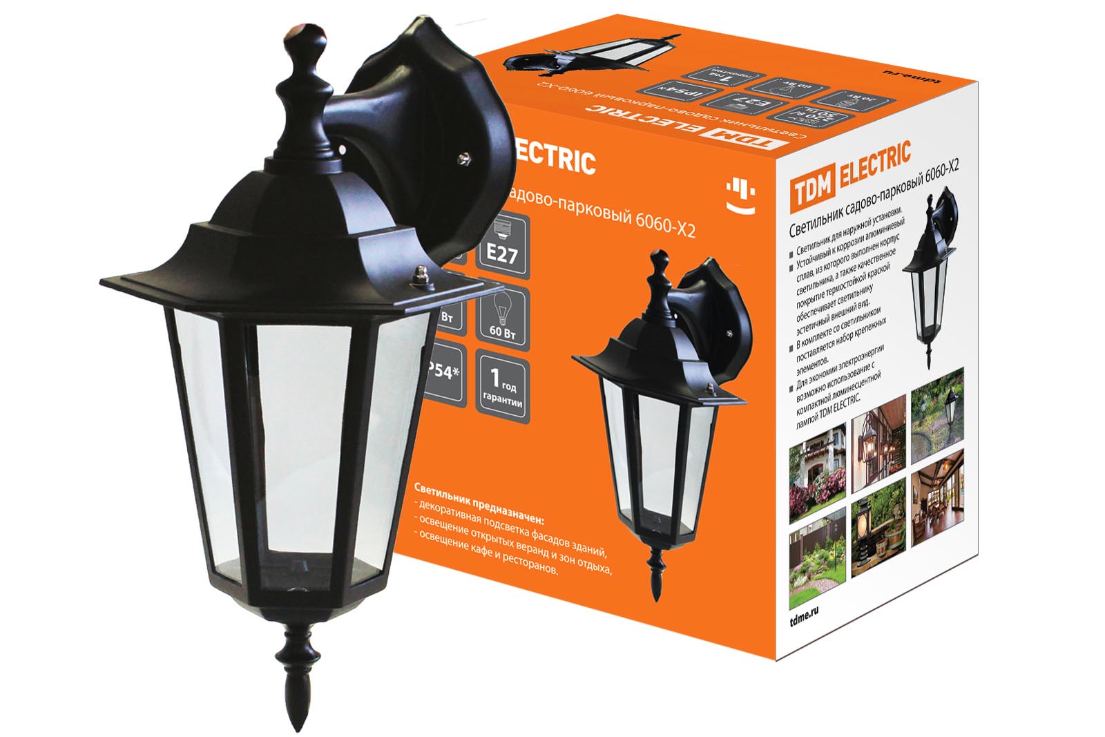 Светильник 6060-02 садово-парковый шестигранник, 60Вт, вниз, черный TDM