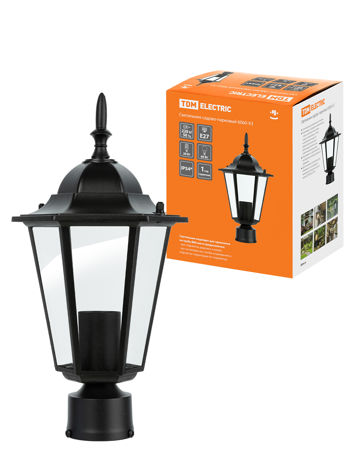Наименование: Светильник 6060-03 садово-парковый шестигранник, 60Вт, на опору, черный TDM