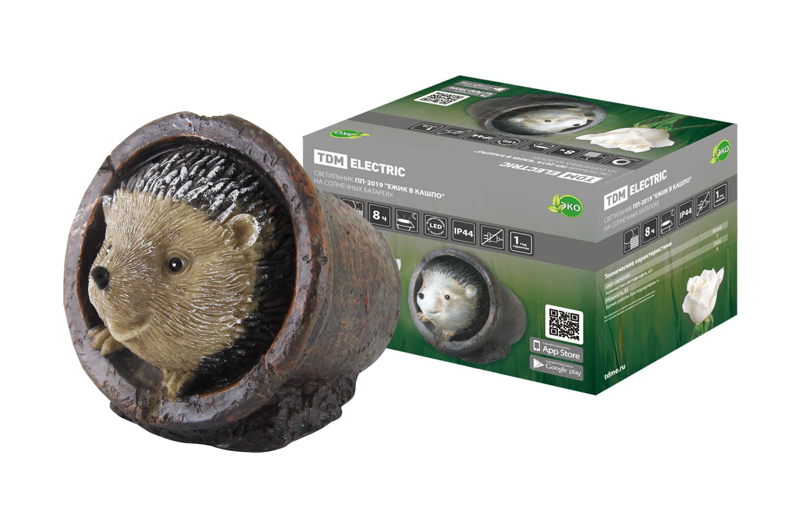 Светильник ПП-2019 "Ежик в кашпо" на солнечных батареях, 14,5x11x11 см, TDM