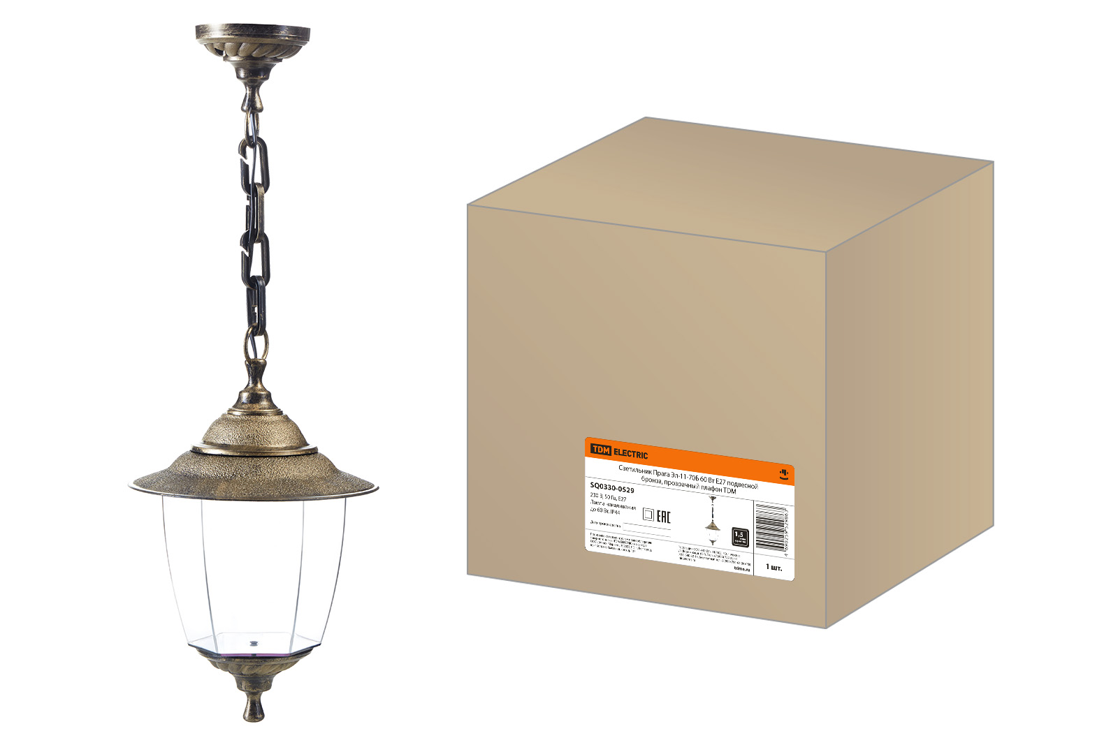 Наименование: Светильник Прага Эл-11-70Б 60 Вт Е27 подвесной бронза, прозрачный плафон TDM