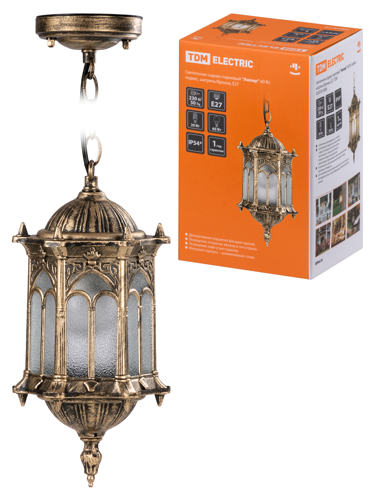 Наименование: Светильник садово-парковый "Ампир" 60 Вт, подвес шагрень/бронза Е27, TDM