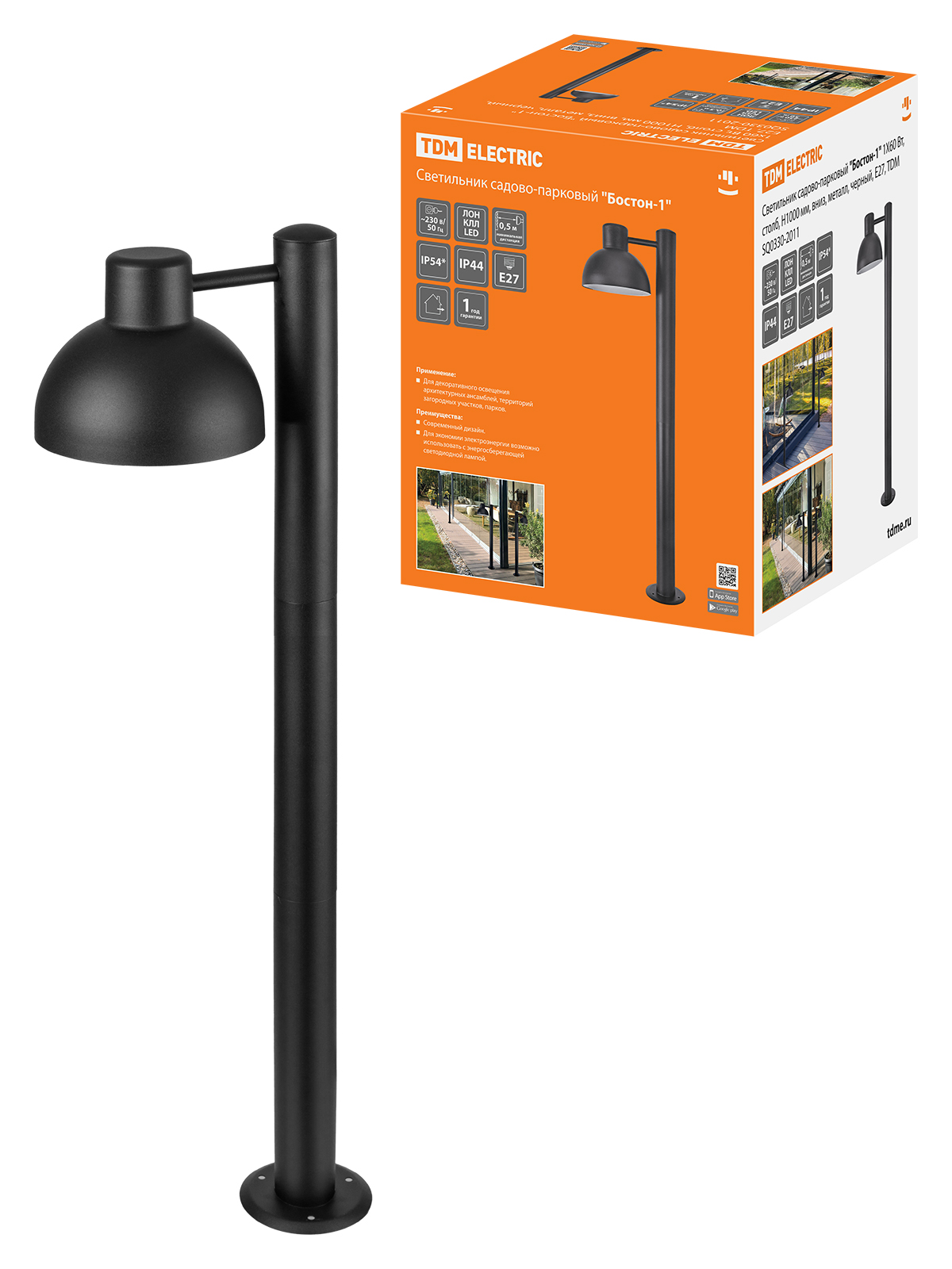 Наименование: Светильник садово-парковый "Бостон-1" 1x60 Вт, столб, H1000 мм, металл, черный, Е27, TDM