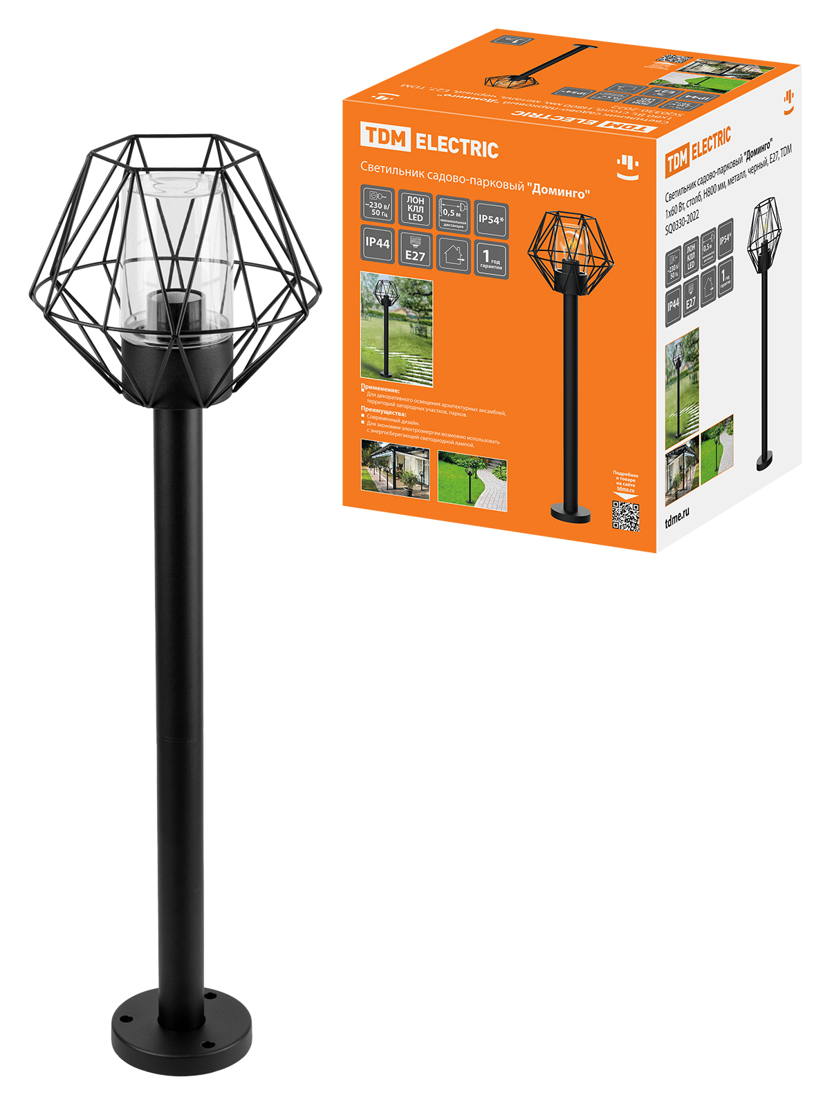 Наименование: Светильник садово-парковый "Доминго" 1х60 Вт, столб, H800 мм, металл, черный, Е27, TDM