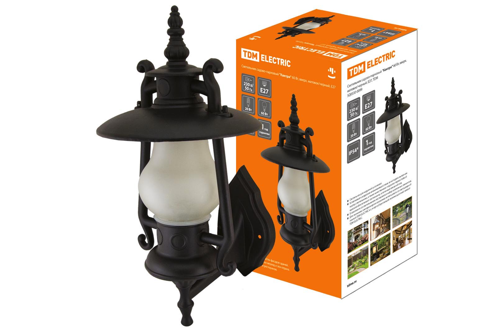 Наименование: Светильник садово-парковый "Кантри" 60 Вт, вверх, матовое/черный, Е27, TDM