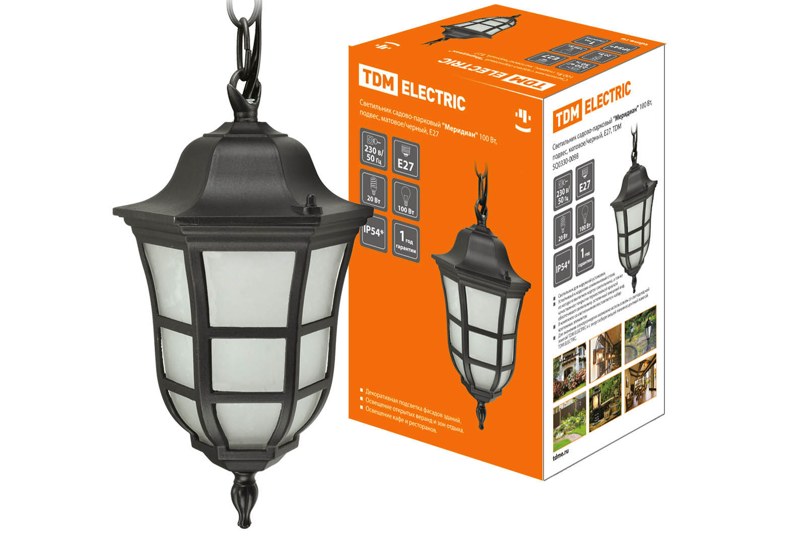 Наименование: Светильник садово-парковый "Меридиан" 100 Вт, подвес, матовое/черный, Е27, TDM