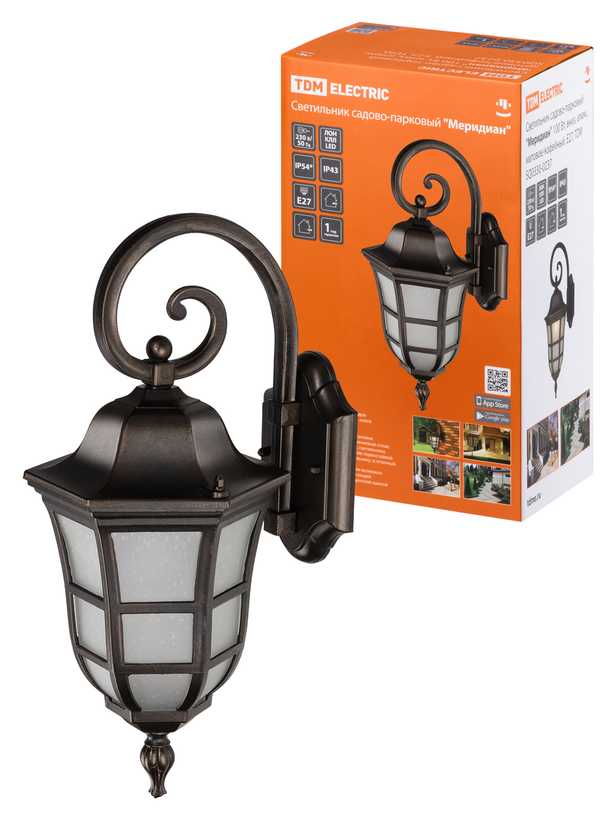 Наименование: Светильник садово-парковый "Меридиан" 100 Вт, вниз, алюм., матовое/кофейный, Е27, TDM