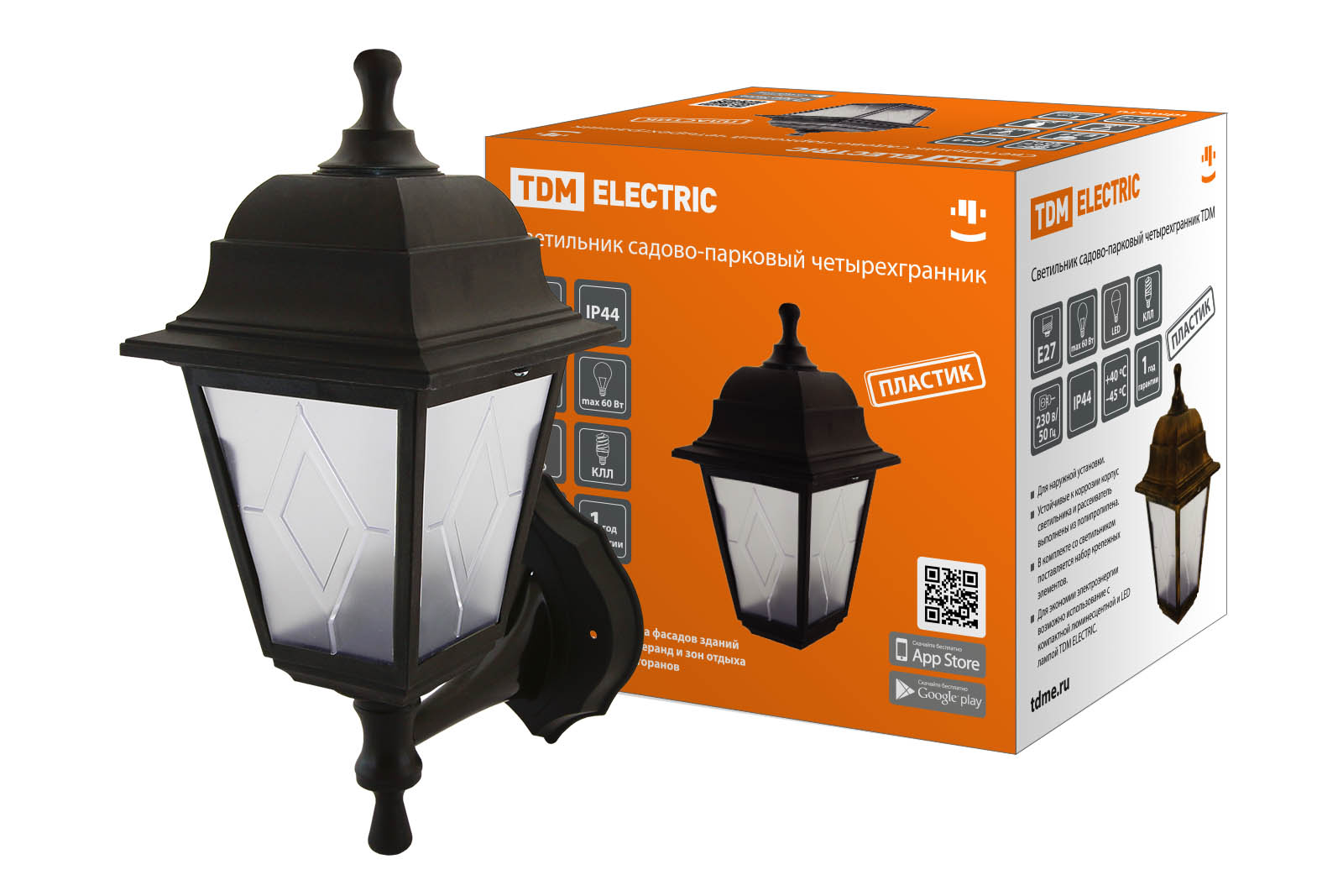 Наименование: Светильник садово-парковый НБУ 04-60-001 четырехгр., настенный, пластик, расс.пластик, черный TDM