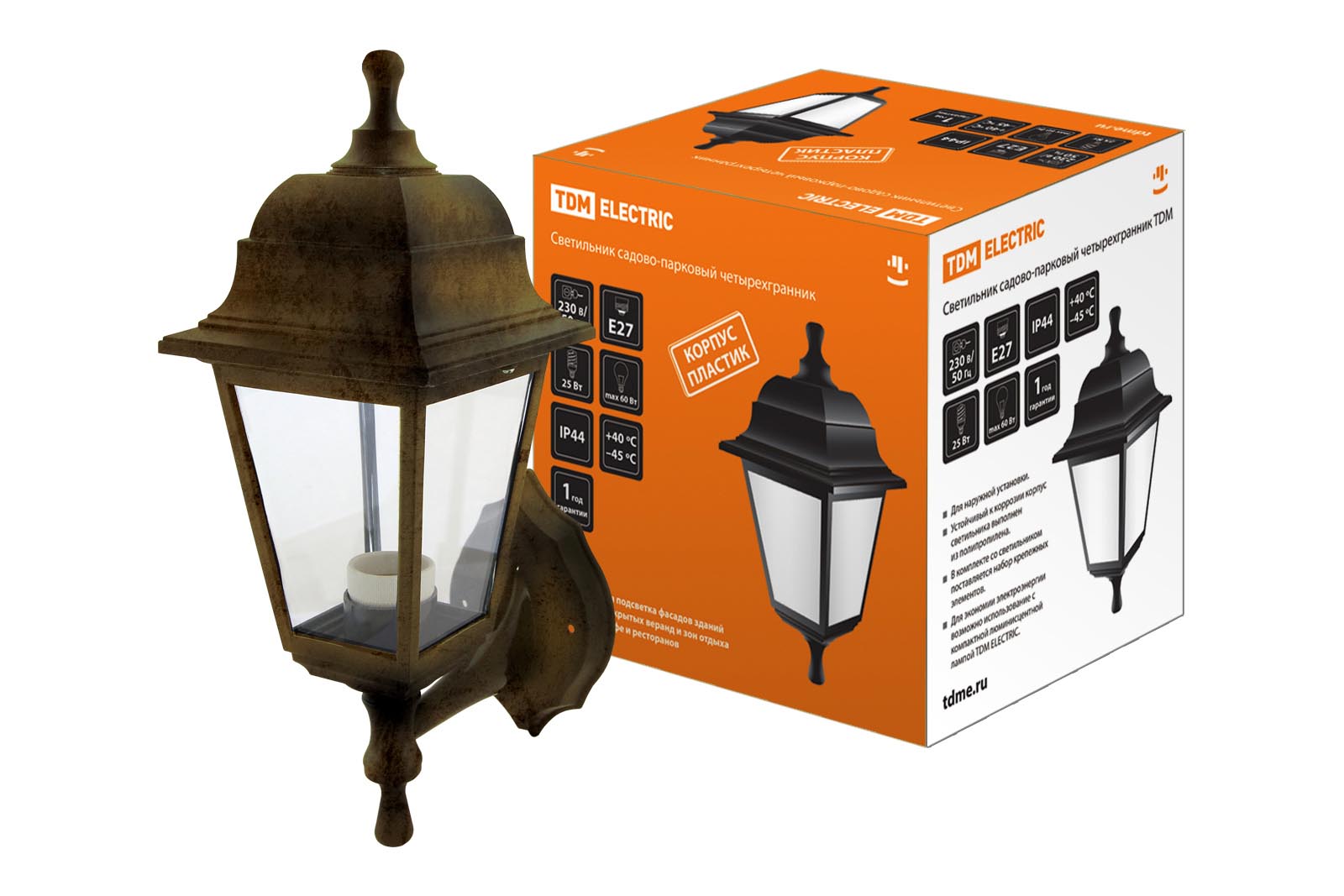 Наименование: Светильник садово-парковый НБУ 04-60-001 четырехгранник, настенный, пластик, бронза TDM
