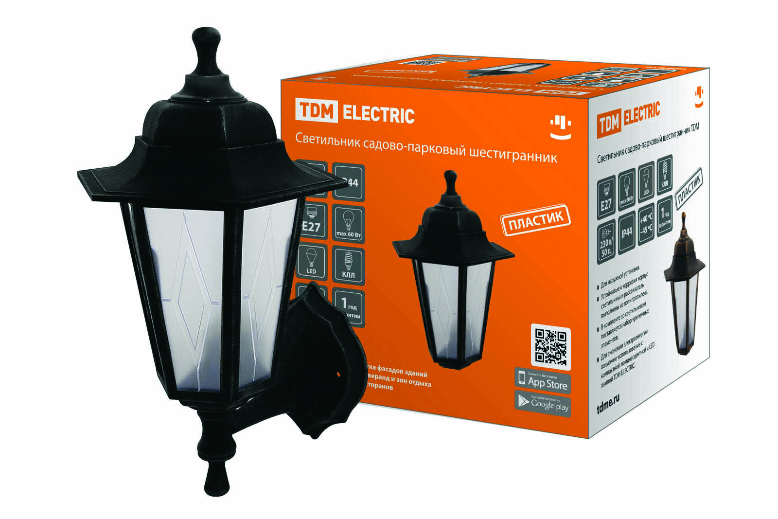 Наименование: Светильник садово-парковый НБУ 06-60-001 шестигр., настенный, пластик, расс.пластик, черный TDM