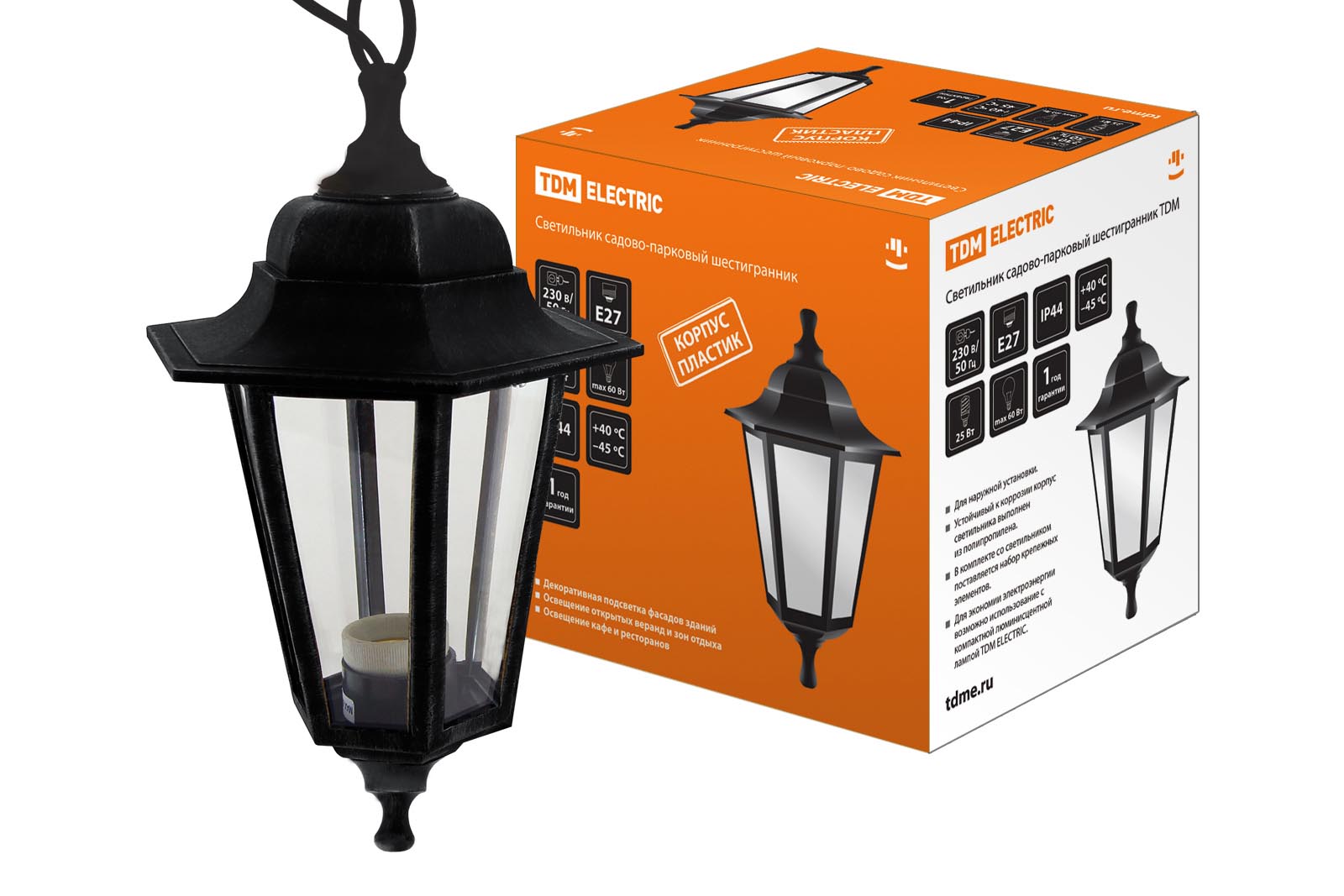 Наименование: Светильник садово-парковый НСУ 06-60-001 шестигранник, подвес, пластик, черный TDM