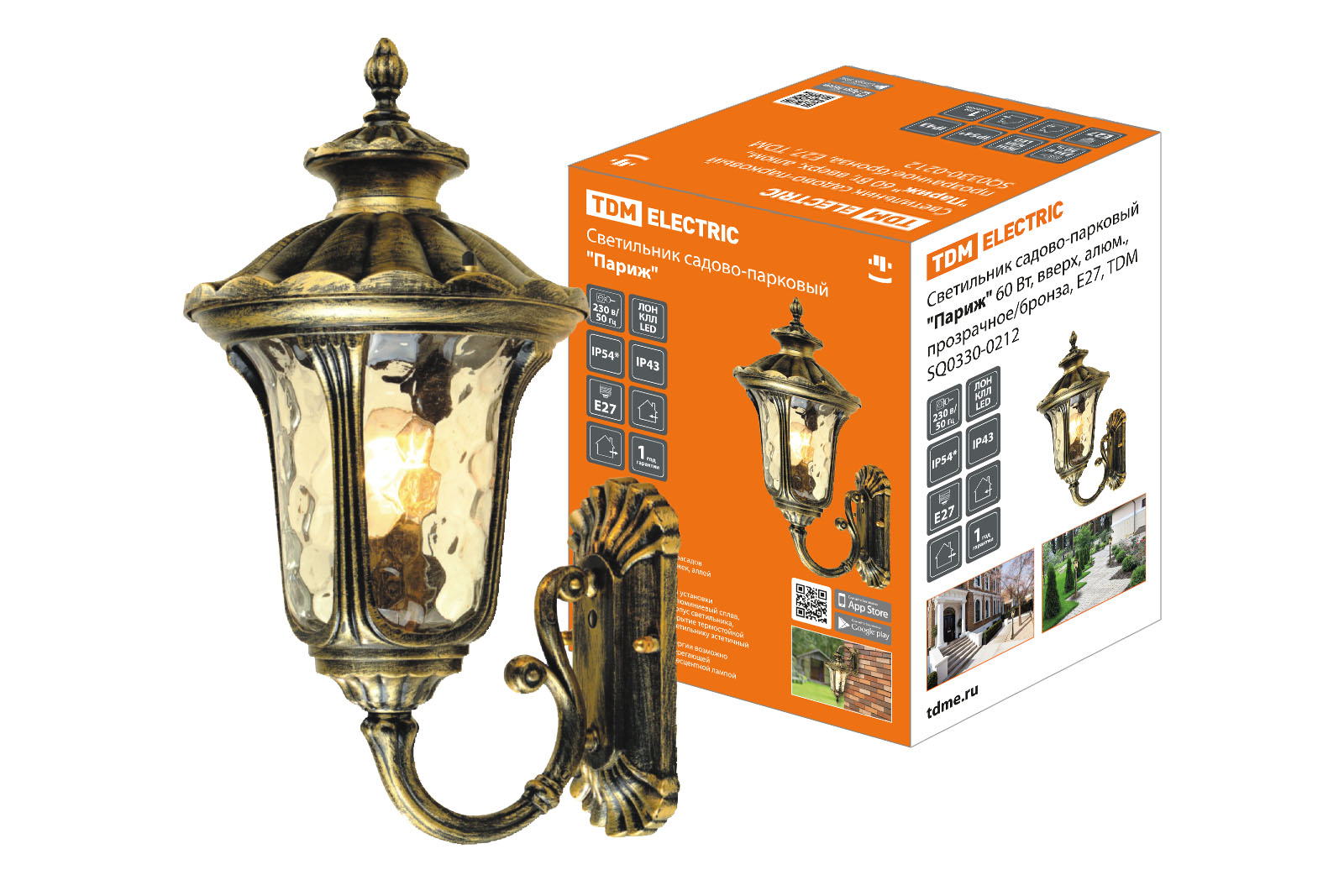 Наименование: Светильник садово-парковый "Париж" 60 Вт, вверх, алюм., прозрачное/бронза, Е27, TDM