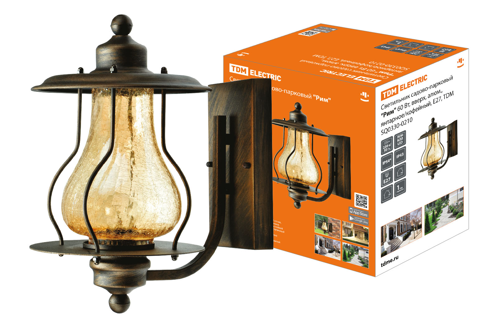 Наименование: Светильник садово-парковый "Рим" 60 Вт, вверх, алюм., янтарное/кофейный, Е27, TDM