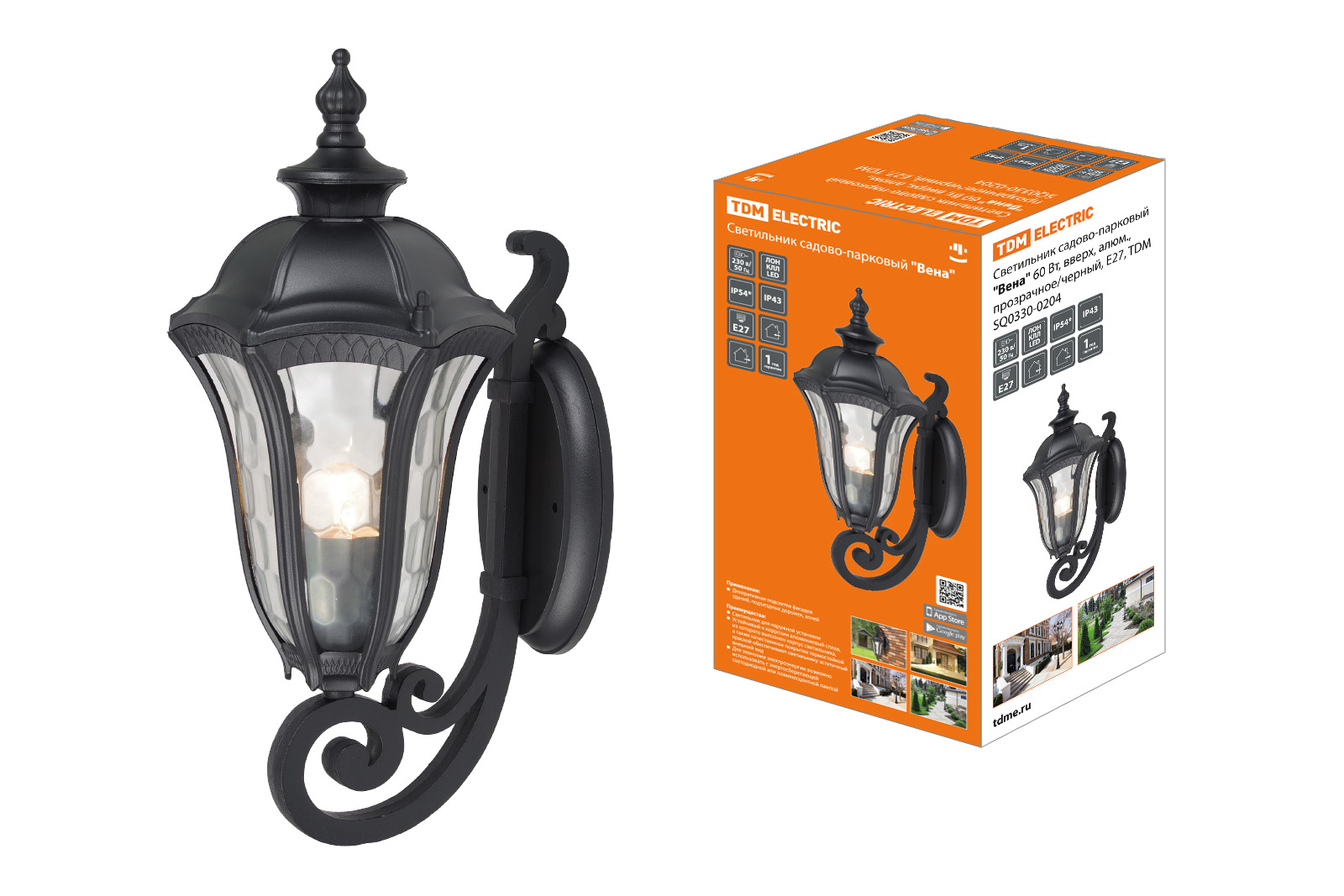 Наименование: Светильник садово-парковый "Вена" 60 Вт, вверх, алюм., прозрачное/черный, Е27, TDM