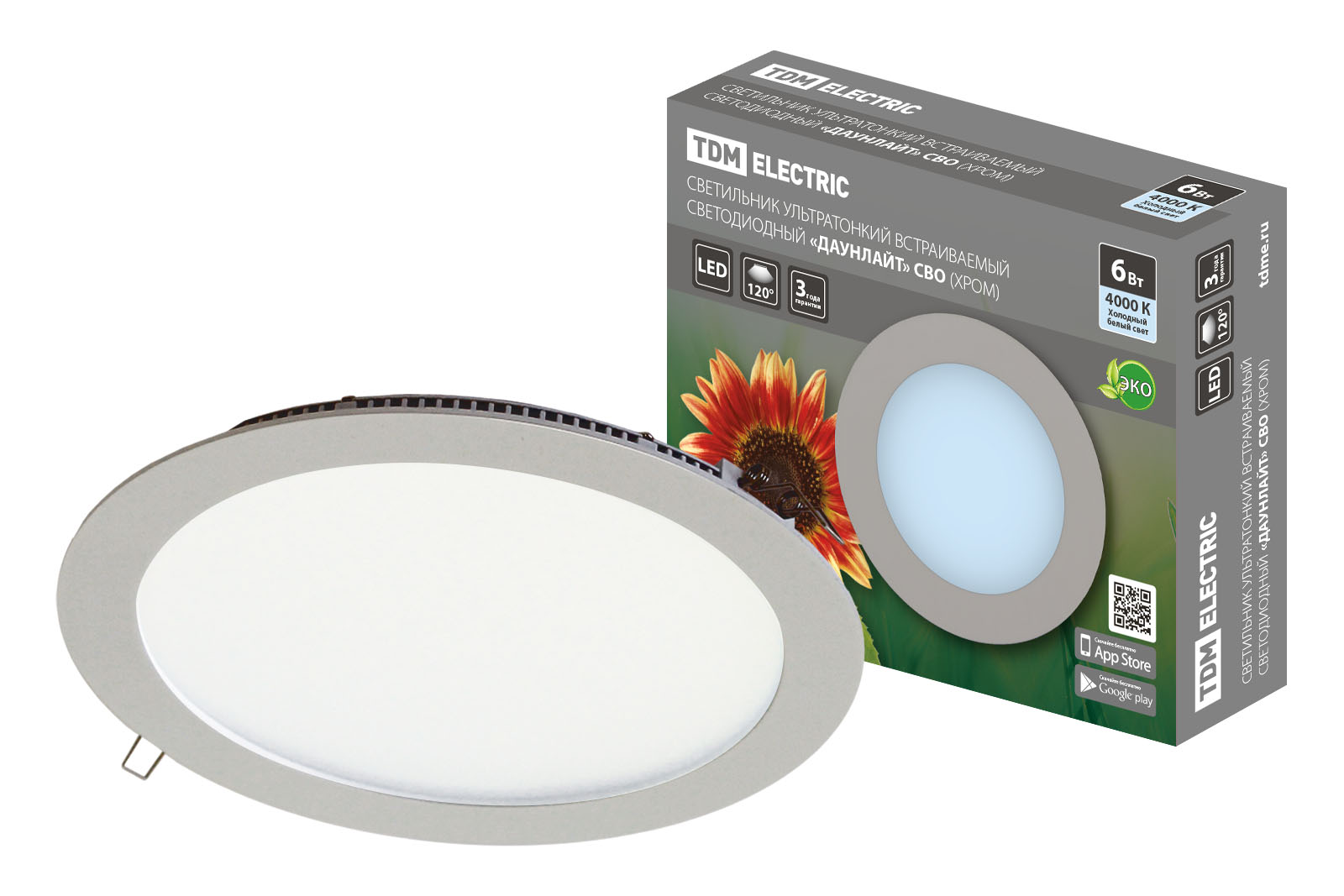 Наименование: Светильник ультратонкий встраиваемый светодиодный "Даунлайт" СВО (хром) 6 Вт 4000К TDM
