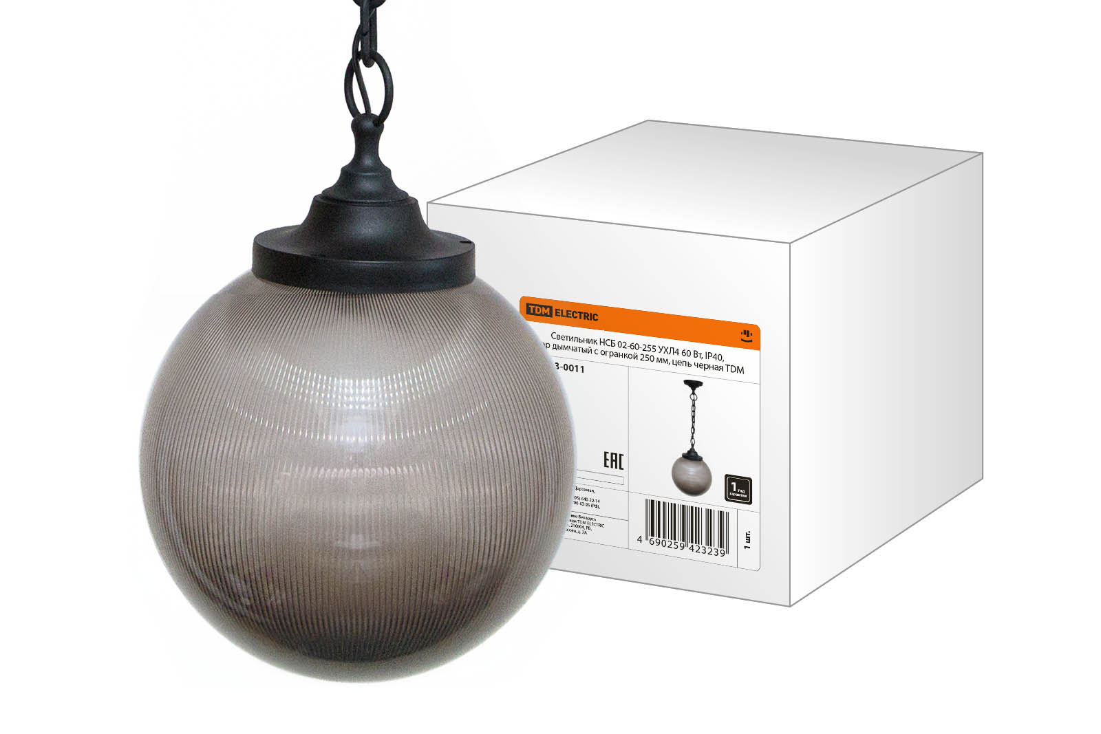 Наименование: Светильник НСБ 02-60-255 УХЛ4 60 Вт, IP40, шар дымчатый с огранкой 250 мм, цепь черная TDM